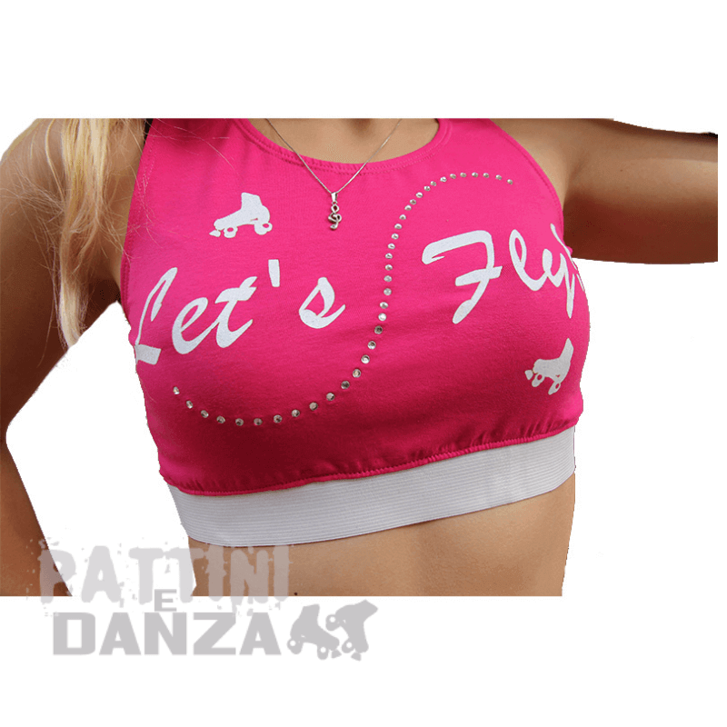 Composé d'un haut avec élastique visible et d'un short. Inserts en strass et imprimé pailleté blanc.